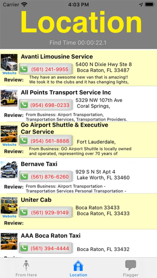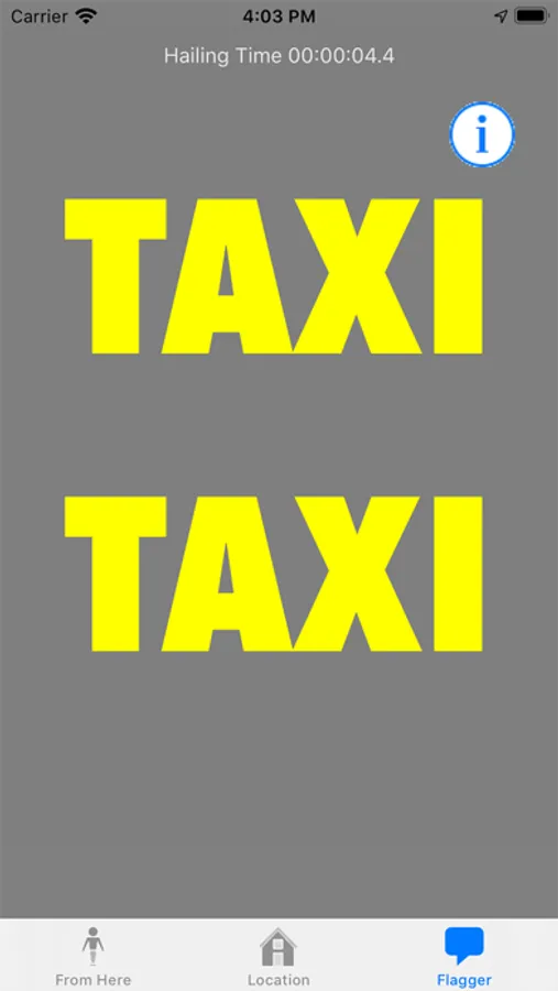 Flash Mobile Taxi Flagger allows you to quickly attract a taxi and optionally indicate a location like an airport. The large flashing TAXI sign will get the cab. The hailing time is also indicated to show you how fast this app works. Just tap the arrow to set the location that will alternately flash with the large TAXI sign. Try it it works to get the cab or find a cab service.