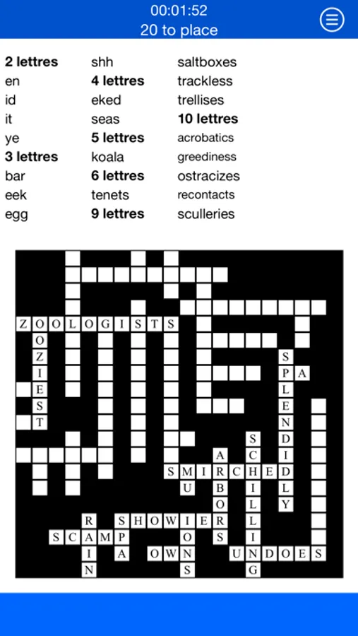 Word grids range from 10x10 to 20x20. 16x16 grids or higher are best played on iPad.