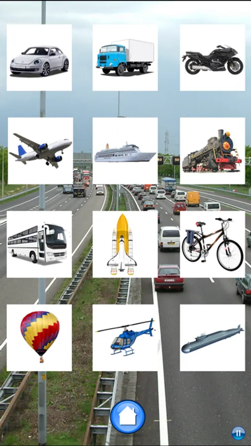 The game contains 36 pictures and sounds of various vehicles.