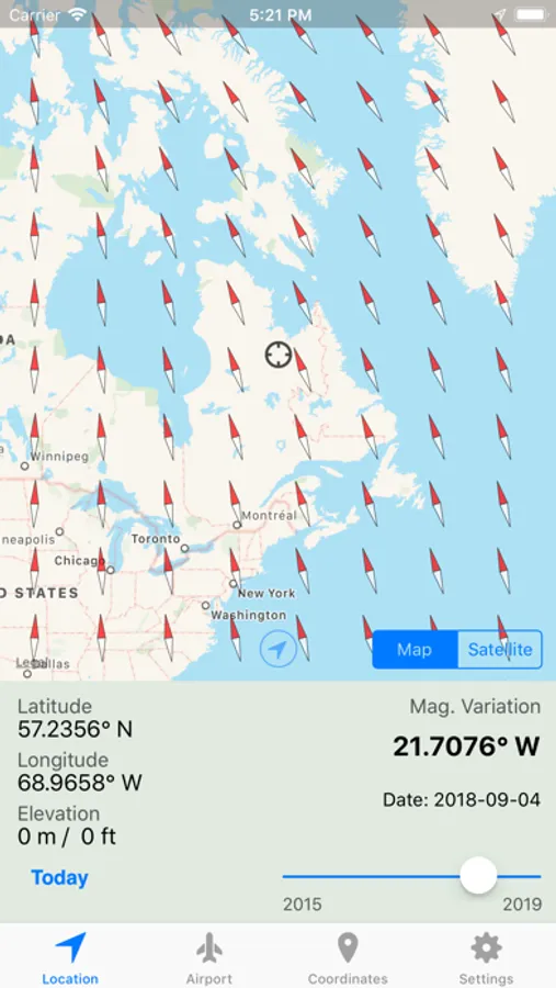 Calculates the magnetic variation based on the World Magnetic Model (WMM) for any location and year between 2020 and 2024 or the current date.