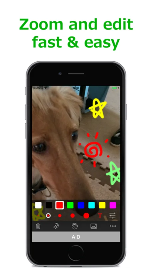It provides simple but useful functions such as 45 colors, five pen thickness, zoom editing and adding text.