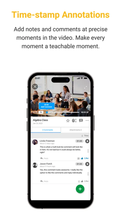 *Share, analyze, and annotate video at precise moments on the video with other participants in both coaching, collaboration, and assessment Huddles.