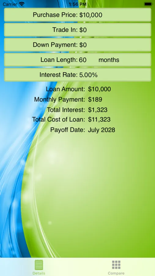 Payoff! Auto is a simple, useful tool to figure out all of the info you would need when contemplating a new car loan, including: