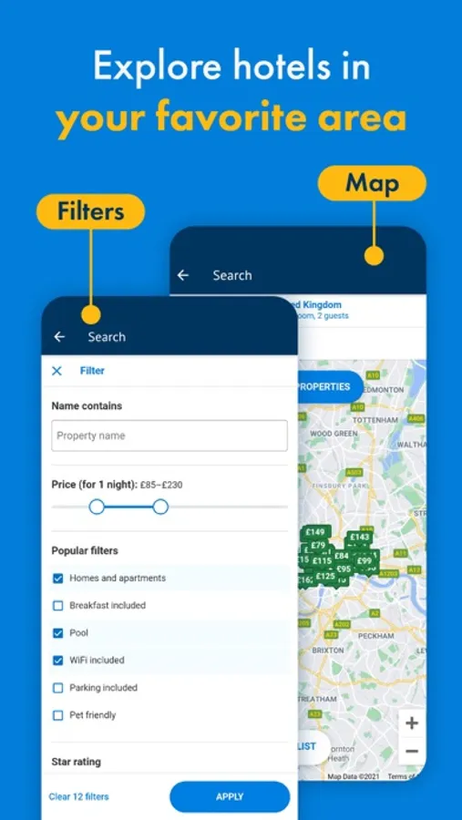 - Filter by the specifications of your hotel, apartment or hostel.