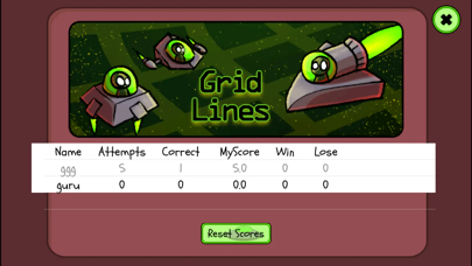 Grid Lines is a Battleship-style math game used to teach students the coordinate plane by plotting points in all four quadrants.