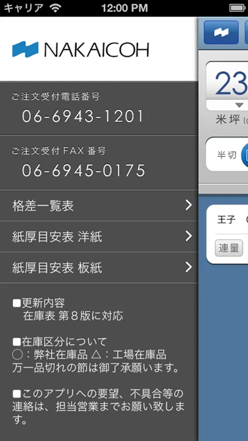 ・米坪 と 縦・横寸法 を入力するだけで、最適な寸法を表示します。(半切品、四切品にも対応)