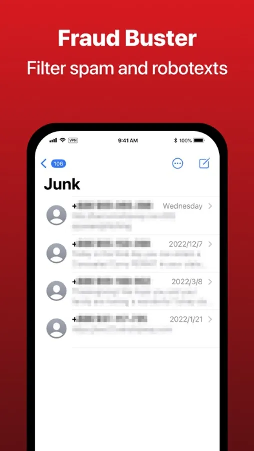 • iMessage protection – Incoming texts with suspicious web links are safely set aside to a junk folder