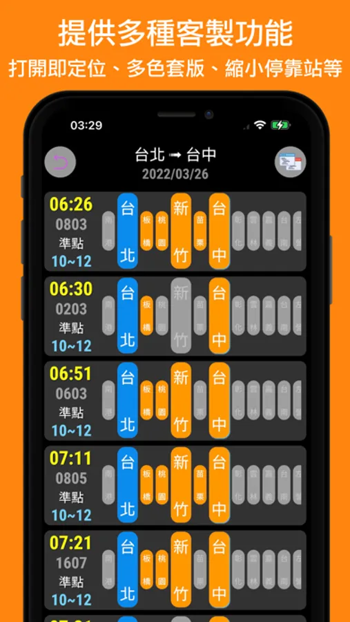 - 打開即用:打開定位後,即得最近高鐵站,最近時刻表。