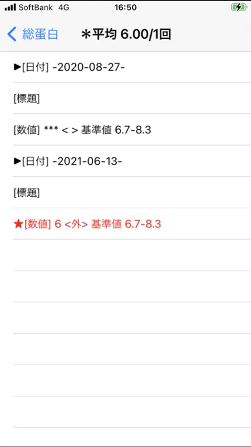 検査項目の基準値を参照できるようにしました。基準値は検査機関により異なりますので、ご注意ください。また、基準値に合わせてグラフの表示範囲等を修正しました。(v1.1)