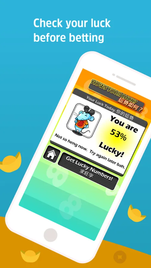 Not sure what numbers to buy? Use the app to generate some lucky numbers for you. The numbers generated is based on your Chinese Zodiac and the time of the day. So be sure to choose the right Zodiac before starting!