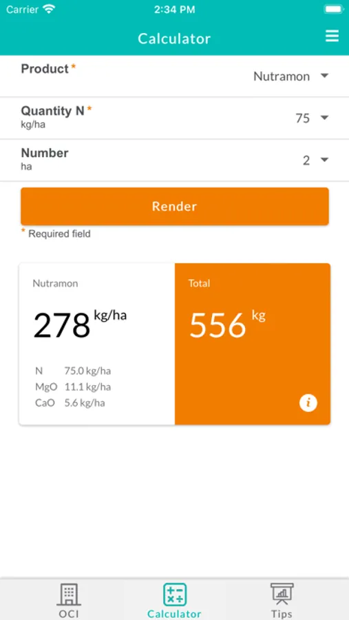 OCI Nutri-N app includes useful features such as: tips around fertilization, storage and handling, a calculator to calculate the necessary amount of fertilizer, and a product catalog.