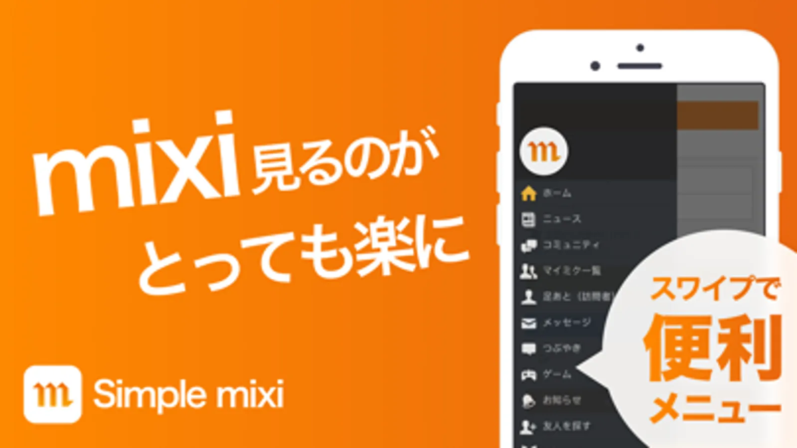 Simple client for mixi is simple and powerful mixi client that allows you to quickly browse the mixi just by thumb taps and sweeps. And Simple mixi has editable menu that allow you to change order as you choose.