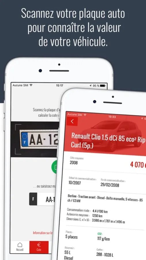 Calculez la cote de votre véhicule en deux clics ! Il vous suffira simplement de scanner la plaque d'immatriculation du véhicule ou de la saisir manuellement.