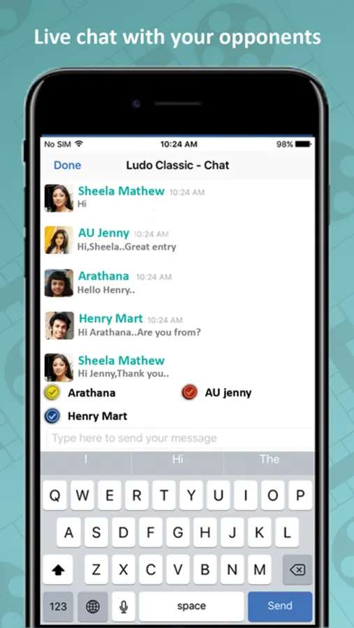 Play with your friends, family or a random player across the world by logging into Game Center / Facebook or as anonymous. You have options to invite your friends or join a match hosted by your facebook and Game Center friends. You can see your total wins & your rank in Global Leaderboards. There are several achievements to unlock in the kingdom of Ludo.