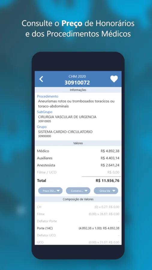• Consultar os preços pelos código nas tabelas AMB e CBHPM;