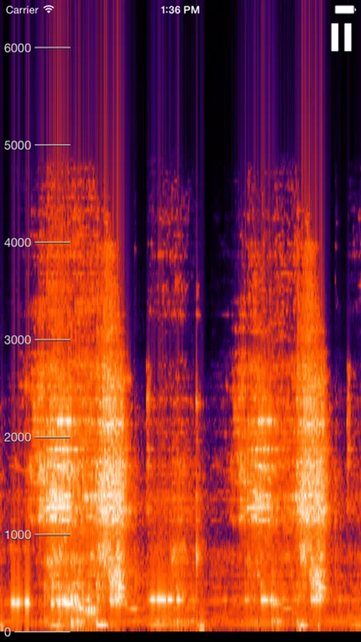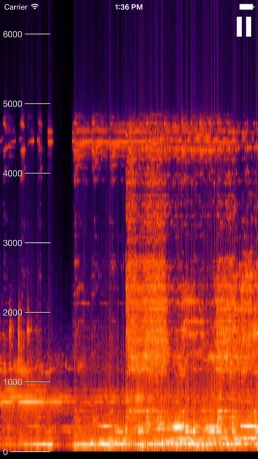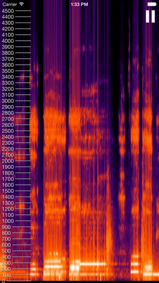 It displays the frequencies of sound around you over time. The horizontal axis is time, the vertical is frequency, and the intensity of frequencies is shown using pretty shades of red.
