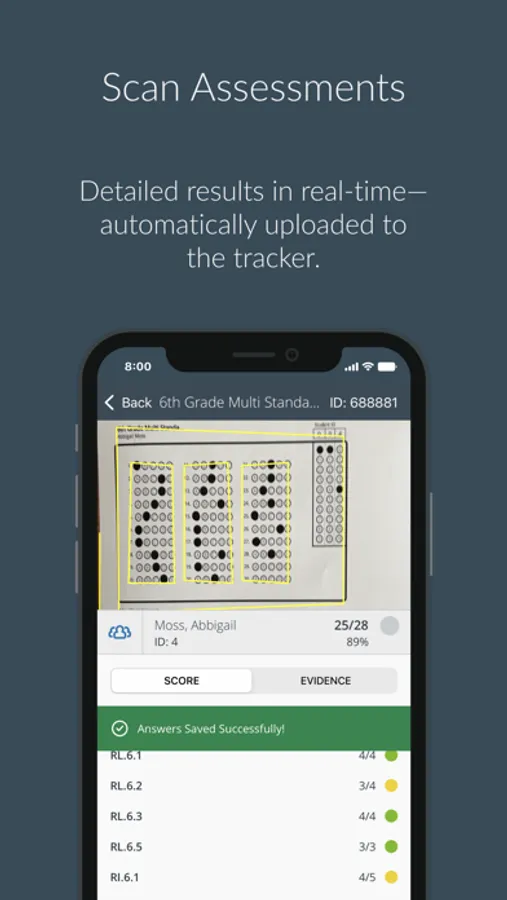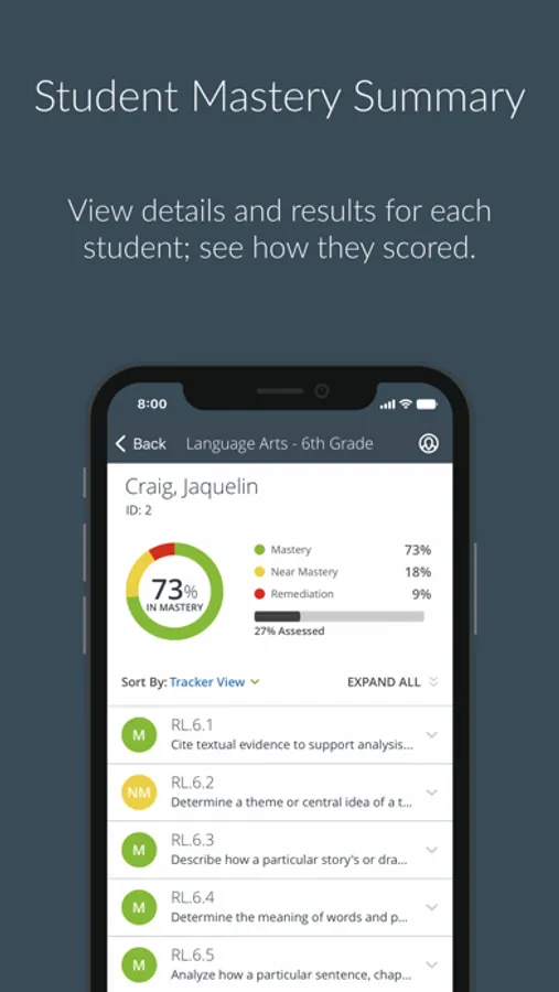 MasteryConnect Teacher App allows teachers to launch and deliver assessments with an iPad or iPhone. Teachers can instantly view student results, sort by mastery levels, and edit their scores.