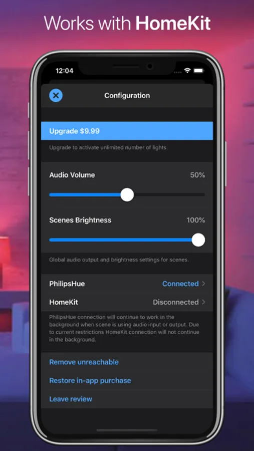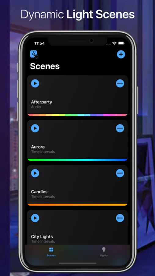 Dynamic scenes and audio features for your Philips Hue, HomeKit and LIFX lights:
