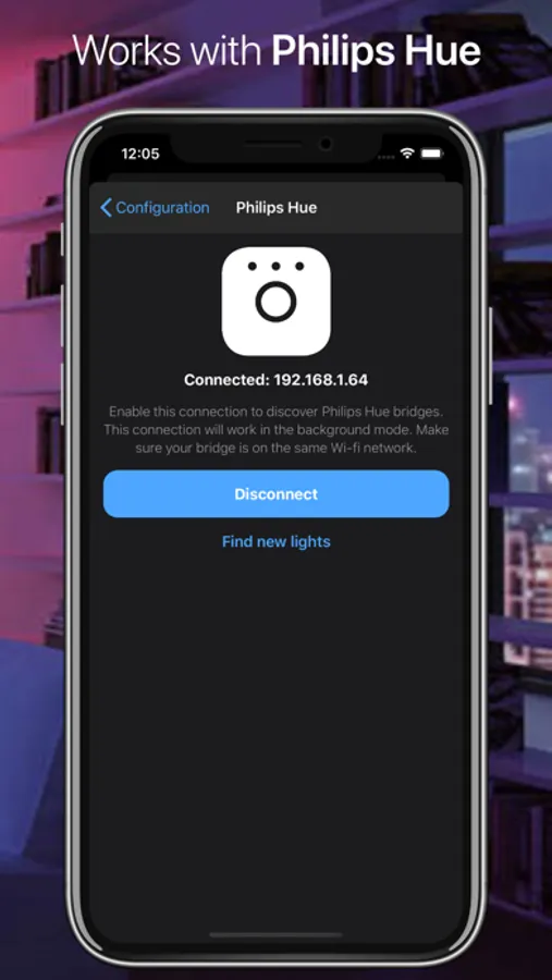 - This app requires a Philips Hue bridge, HomeKit or LIFX lights.