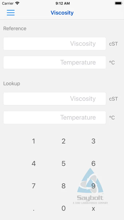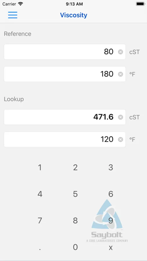 Welcome to the Viscosity/Temperature conversion app developed by Saybolt.