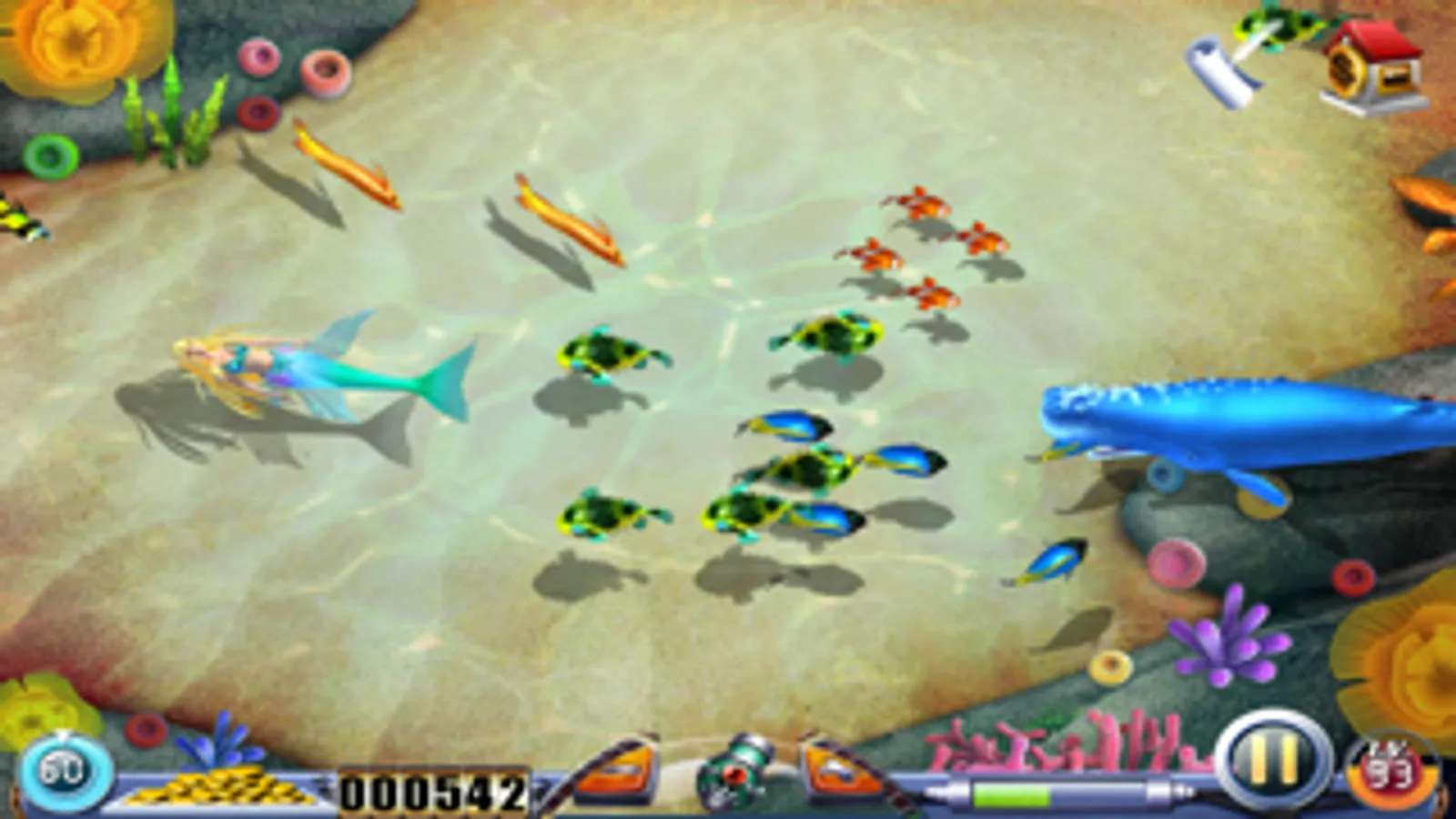 Touch your phone to indicate the direction of shooting; your fish cannon will fire net to catch fish on its way. You will have chance to catch all the fish within the diameter and you will be rewarded with coins. Each net you fire will cost you corresponding coins and increase the Cannon’s Power Gauge Also. Once your Cannon’s Power Gauge is full, you will be rewarded with a special Laser Gun to annihilate anything and everything on its path! Even the most difficult creatures to catch – Sharks and Mermaids!