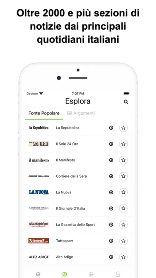 La migliore app per leggere tutti i giornali in Italia, comprende decine di migliaia di sezioni di notizie provenienti da quasi un centinaio di testate italiane. L'app organizza automaticamente gli articoli di notizie in base a ciò che si seleziona, un'esperienza indispensabile per il vostro telefono.