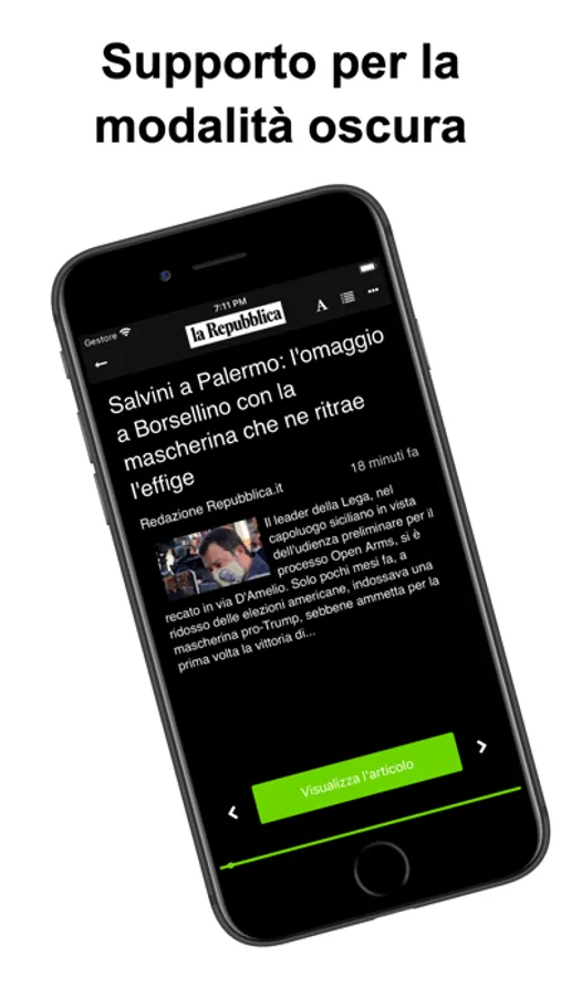 Personalizza le opzioni di lettura in modalità chiara o scura per aiutarti a leggere le notizie nel modo migliore.