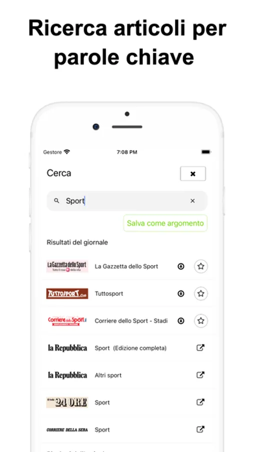 In alternativa, potete cercare solo le rubriche/argomenti che vi interessano e leggerli da tutti i giornali presenti nell'app.