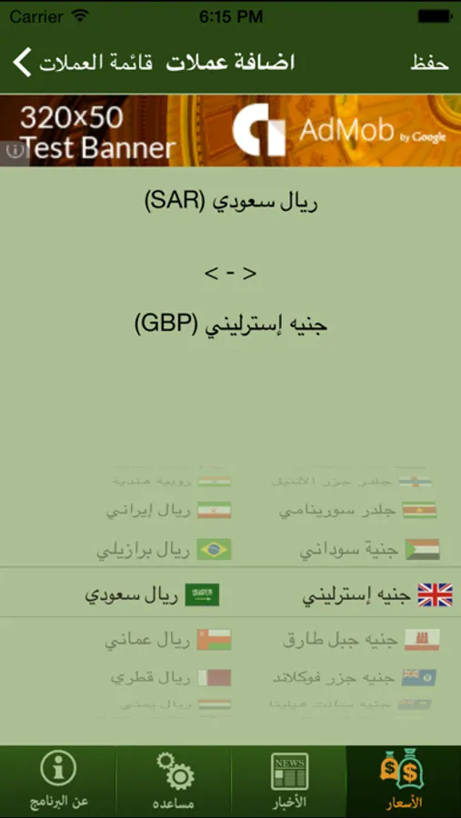 ٤.امكانية اعادة ترتيب قائمة العملات.