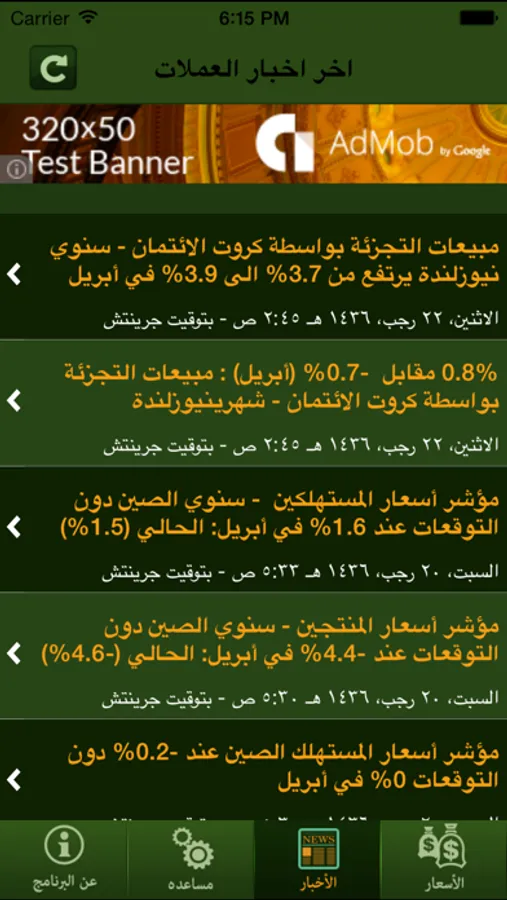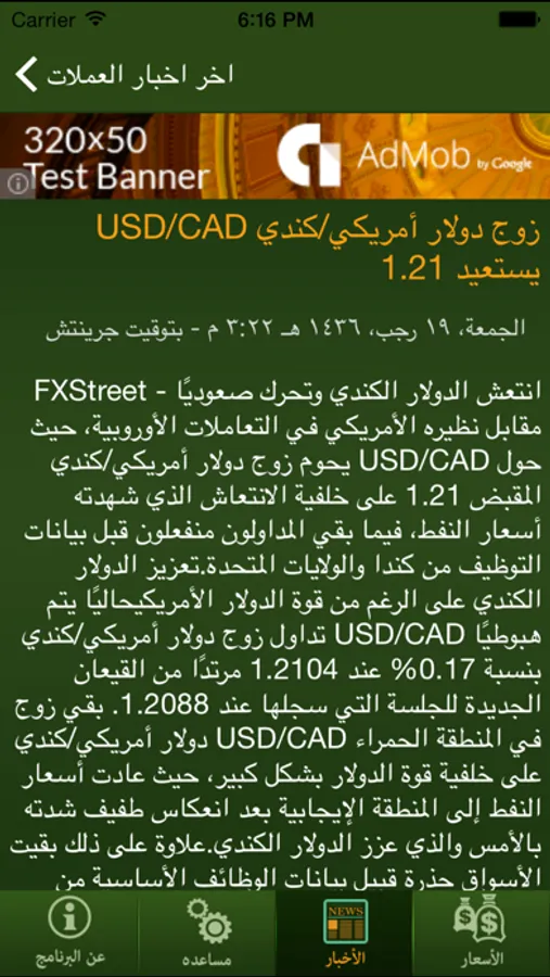 أسعار و أخبار العملات هو أول تطبيق عربى يمكنك من متابعة أحدث الاخبار الخاصة بالعملات و اسعار العملات و المعادن معا.