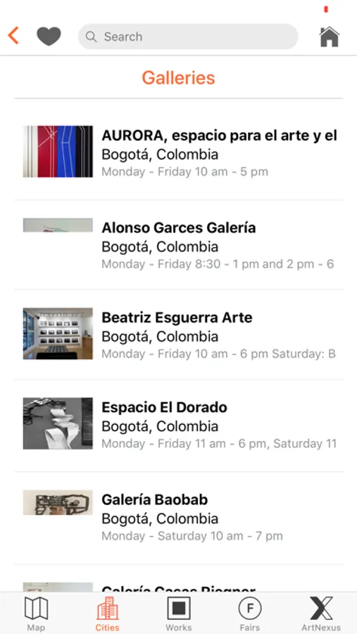 In the List View you may select the city; it features a search system by institution, museums, galleries, biennials, fairs, collections etc; you will find all the information and programs.