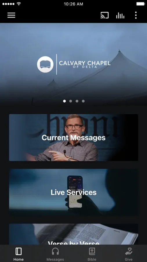 The Calvary Chapel of Delta app was developed with the Subsplash App Platform.