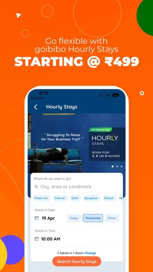 ● Avail flexible check-in and check-out services on our hourly room booking app