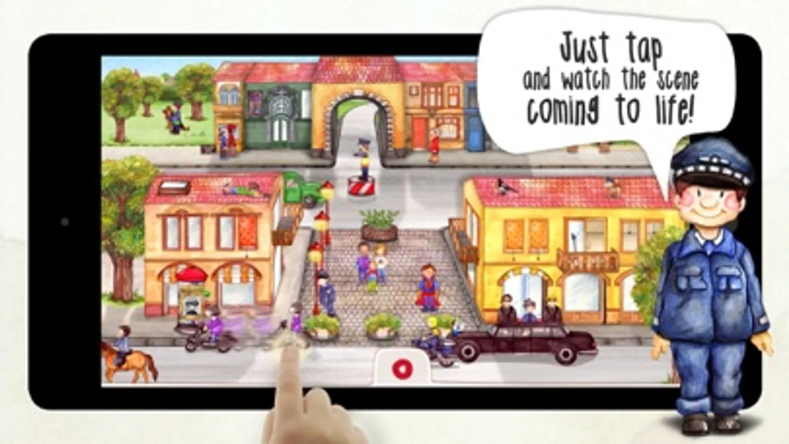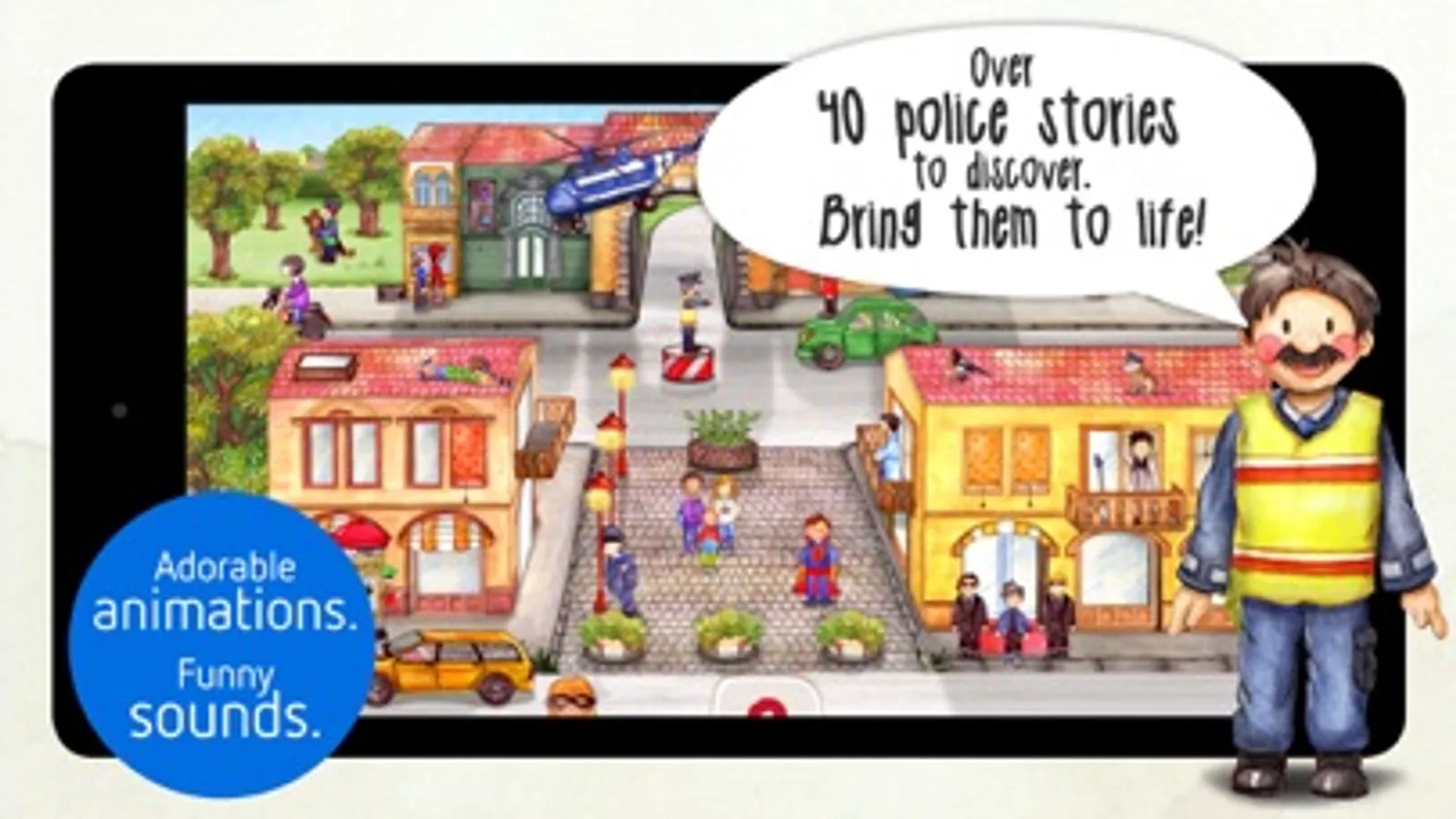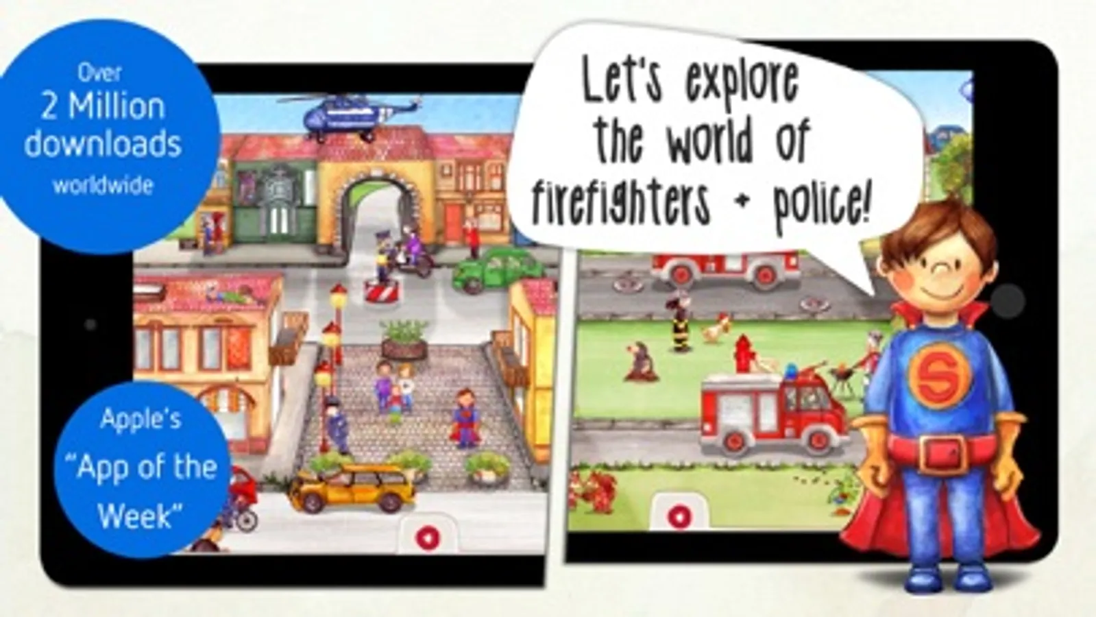 Let your kids exploring our world of firefighters and policemen: just tap and watch the scenes coming to life. It's all truly interactive, with adorable animations and whimsical sounds.