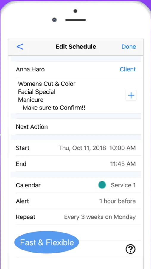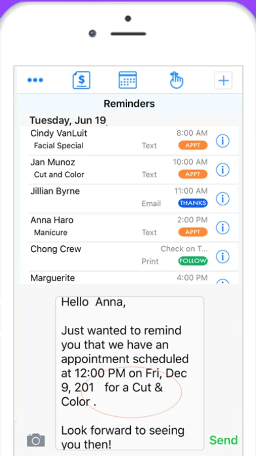 Scheduler - Your calendar on steroids. Select client names from your contacts and add the service information to the appointment. Create reminders, complete and checkout the client, view contact management info and send appointment confirmations. All right from the scheduled appointment. View multiple calendars, set alerts, repeating appointments and search history.