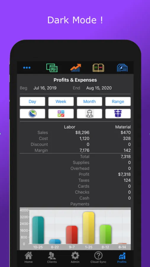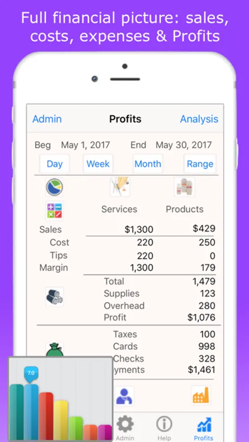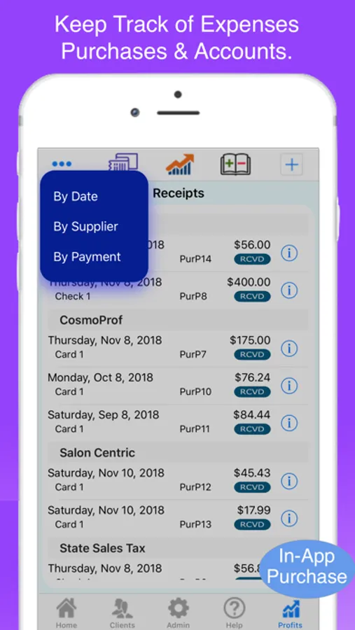 Profits provides a complete financial system that tracks all sales, purchases and expenses. Includes ALL formatted PDF Reports that can be directly printed or attached to emails.