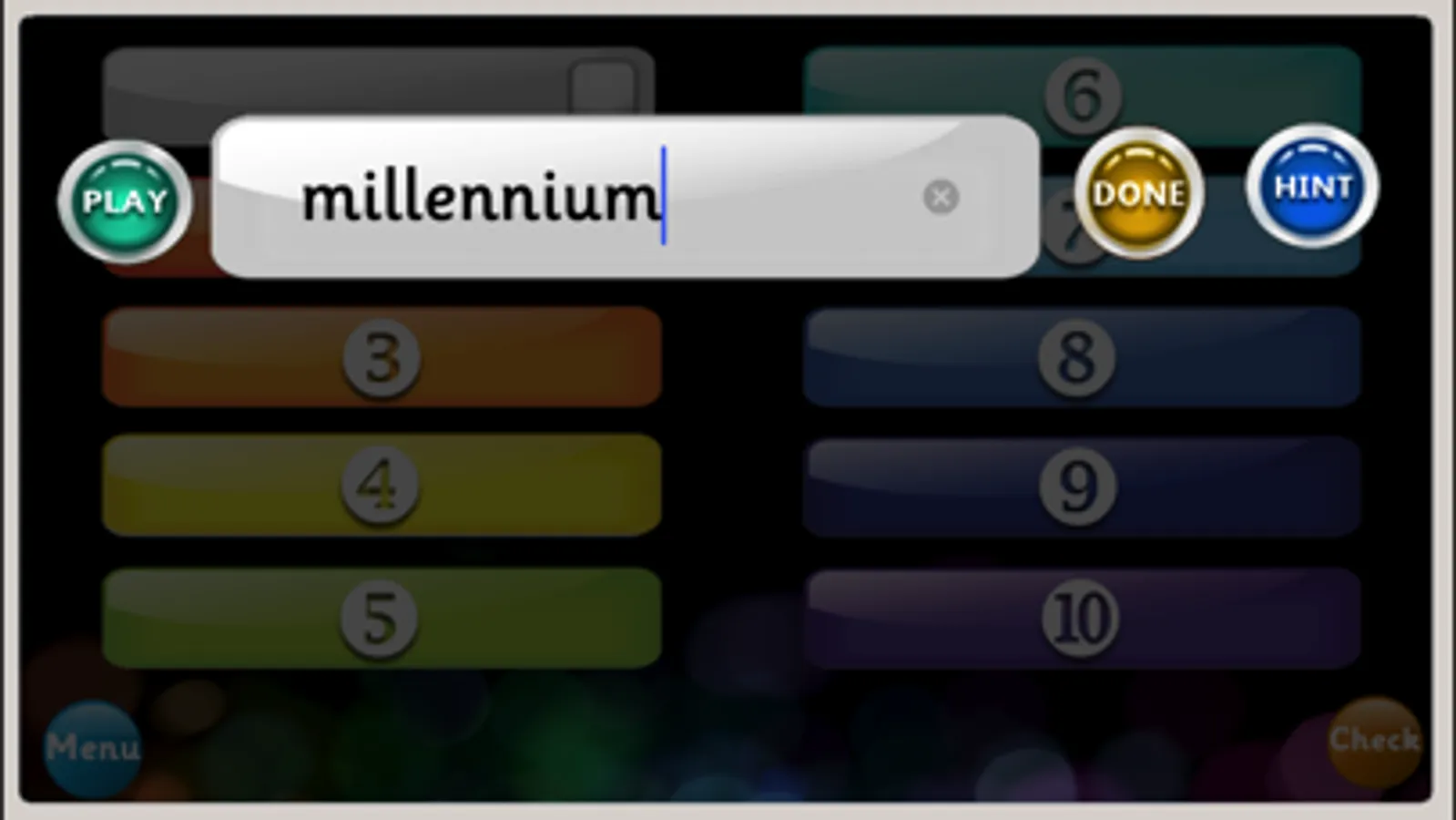 The player is encouraged to listen to the word and spell the word correctly, sometimes using capital letters and spaces too!