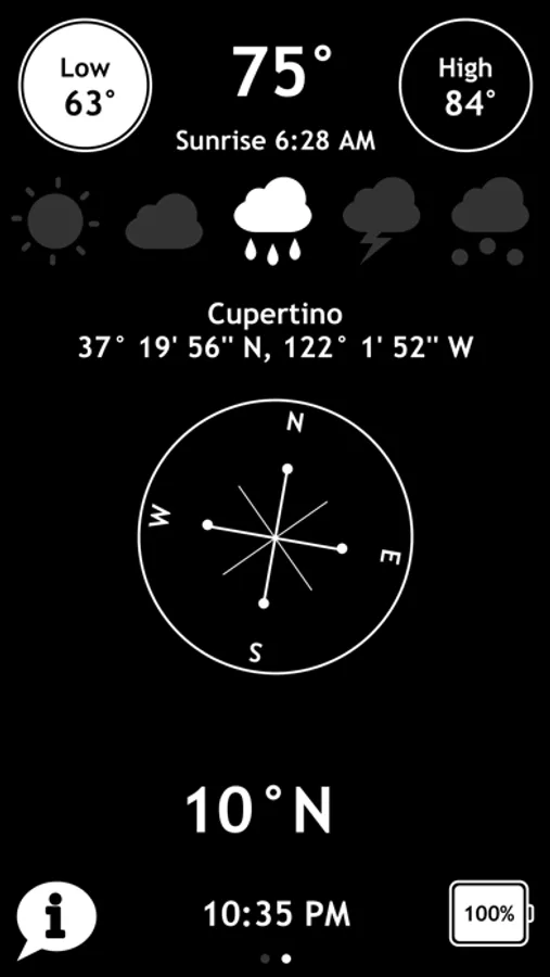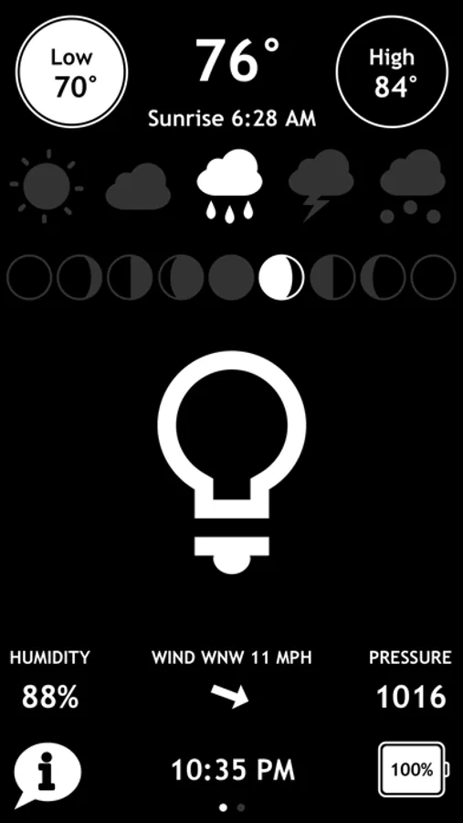 Shake for a flashlight and swipe for a compass. Shake! is your friendly outdoor companion that displays the following weather data for your current location.