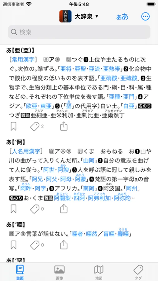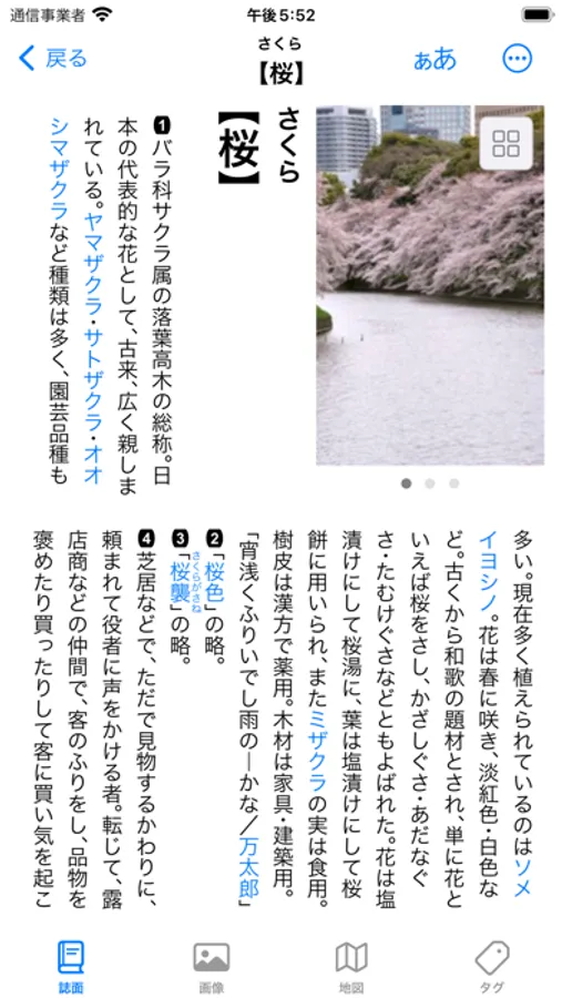 『大辞泉』アプリは、その美しい誌面表示にも特徴があります。独自開発したテキストレンダリングエンジンにより、紙の辞書と同様またはそれを超える辞書専用の日本語組版を実現しました。