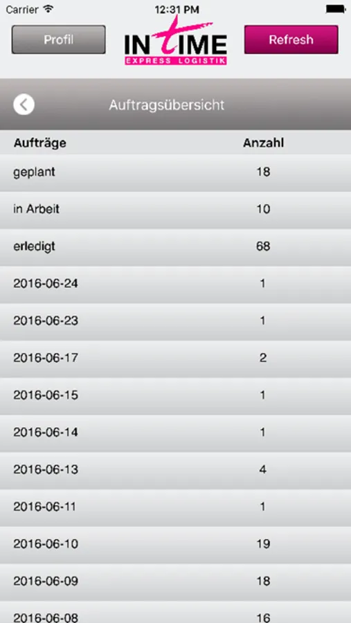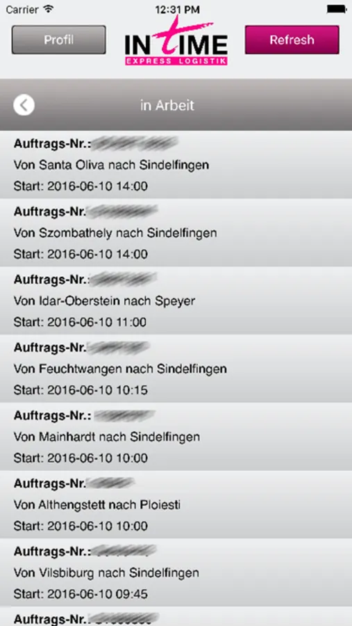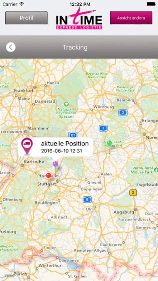 By means of the free of charge inTime App you are always precisely informed about your transports. You can easily retrieve all status information and keep an eye on your orders.