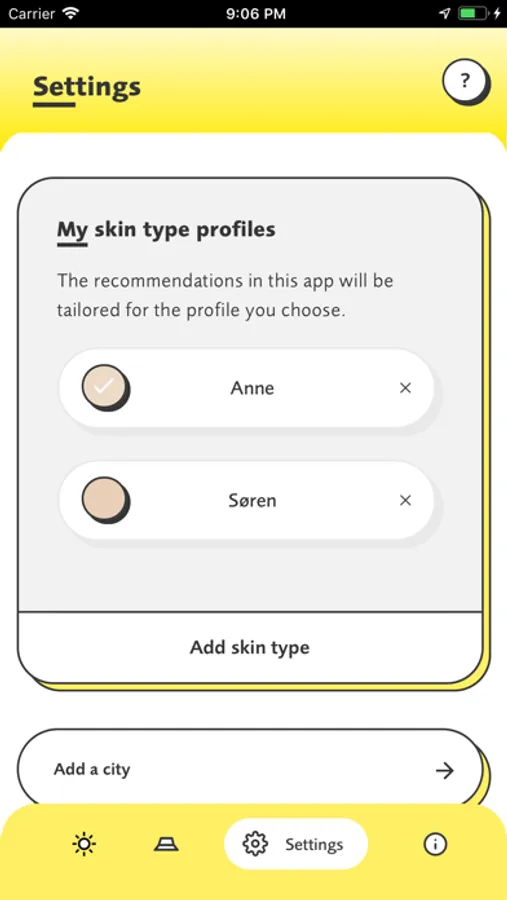 The UV-INDEKS app can be used everywhere in the world to provide you with a UV index forecast for your current position or for selected destinations that you add to your profile. You can also see how the expected cloud cover will affect the UV index. You can set the app to either daily updates or alerts when the UV index is 3 or more. The app also contains an interactive guide to help you identify your skin type and get specific advice about sun protection. The free UV-INDEKS app is a collaboration between The Danish Cancer Society, TrygFonden, The Danish Health Authority and The Danish Environmental Protection Agency.