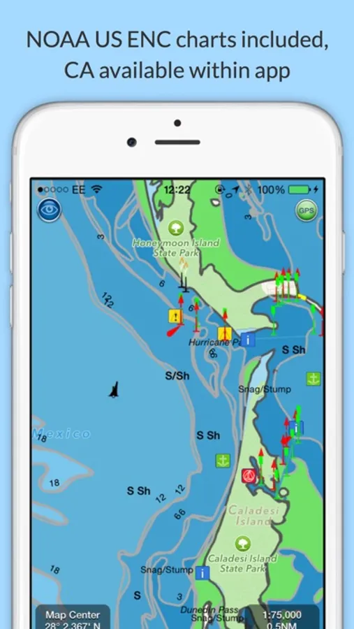 Requires iPhone or iPad. GPS only required for real time route navigation. Optional Real time AIS, Tides and Weather information require an active internet connection.