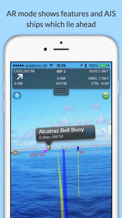 SeaNav’s unique AR view mode allows you to view buoys, lights, ships, waypoints and track overlaid on your iPhone or iPad live camera view. With "AR LockOn" you can select a target on the chart and then be guided to it in the AR camera view.