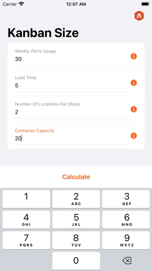A kanban calculator used to determine the ideal size for units within the kanban. Great for any software development or manufacturing process.