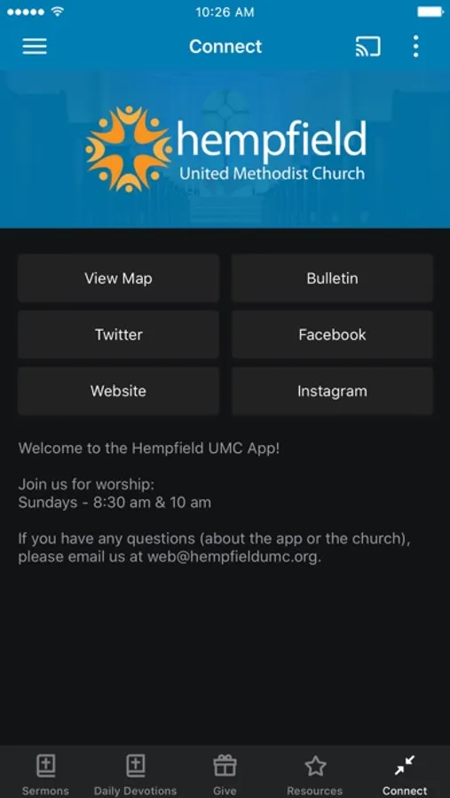The Hempfield UMC app was developed with the Subsplash App Platform.