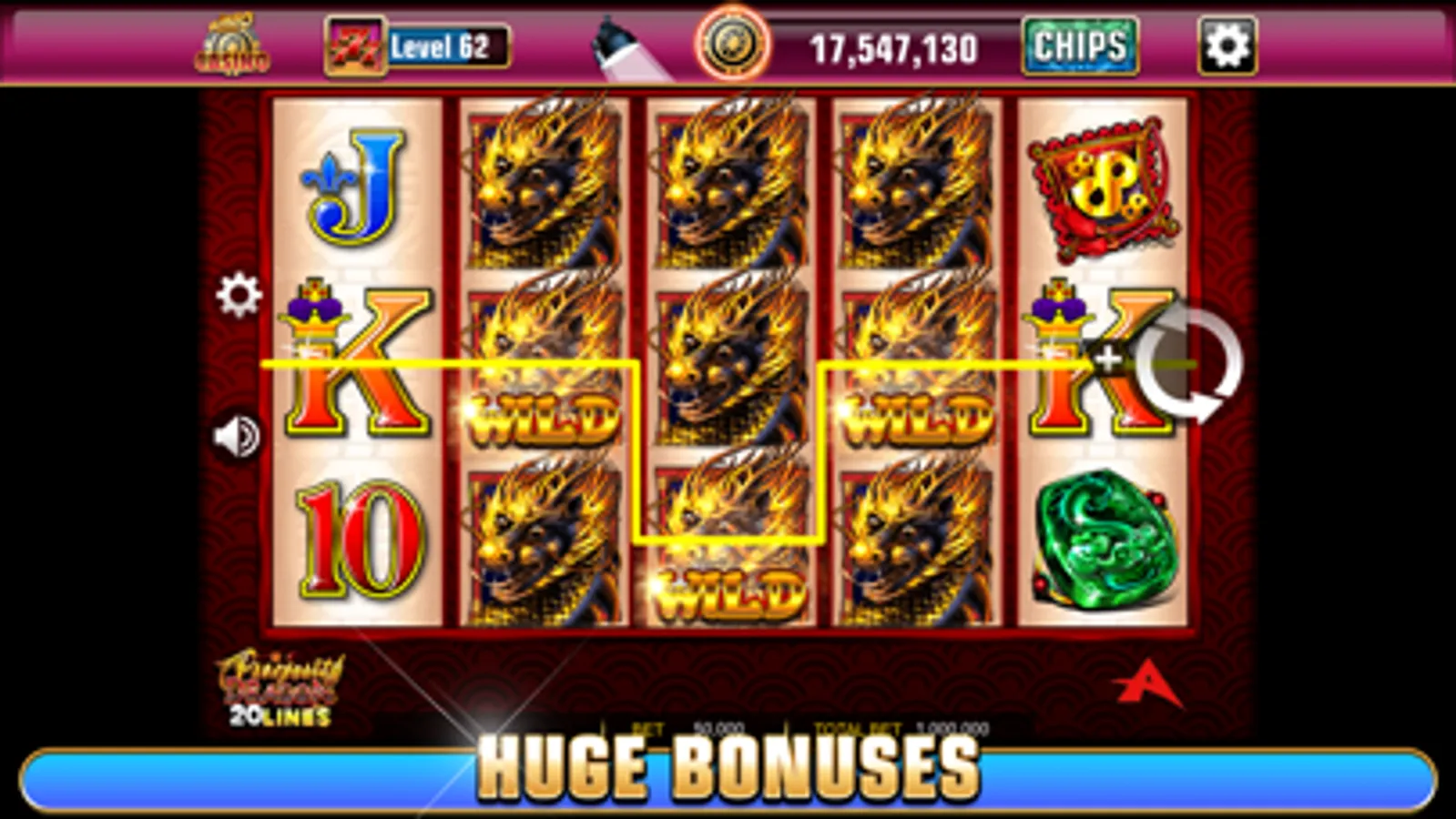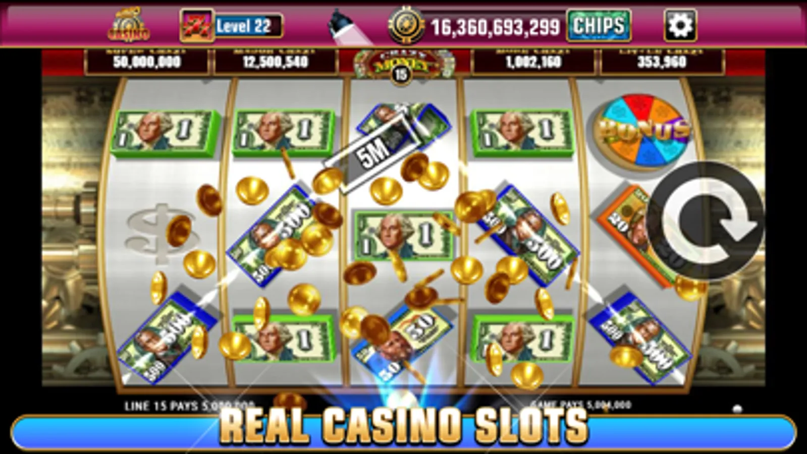 • Try your luck and spin the Daily Bonus Wheel for up to 1,500,000 Chips and collect free bonus chips every 4 hours
