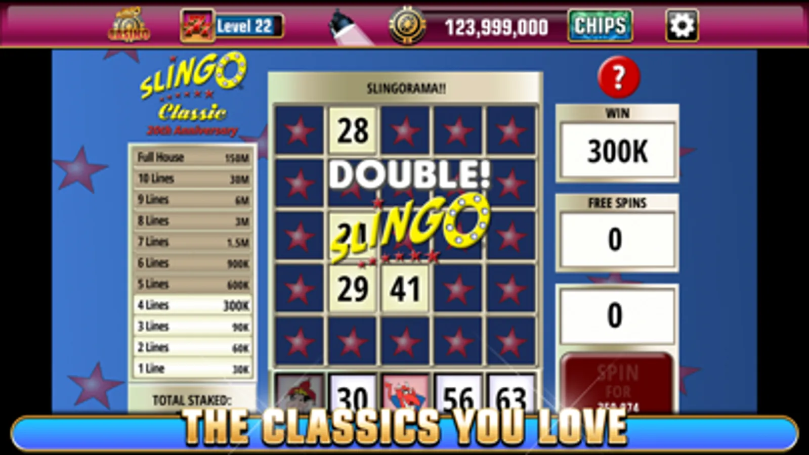 • Slingo Classic - The 20th anniversary celebration of the classic slots and bingo mashup