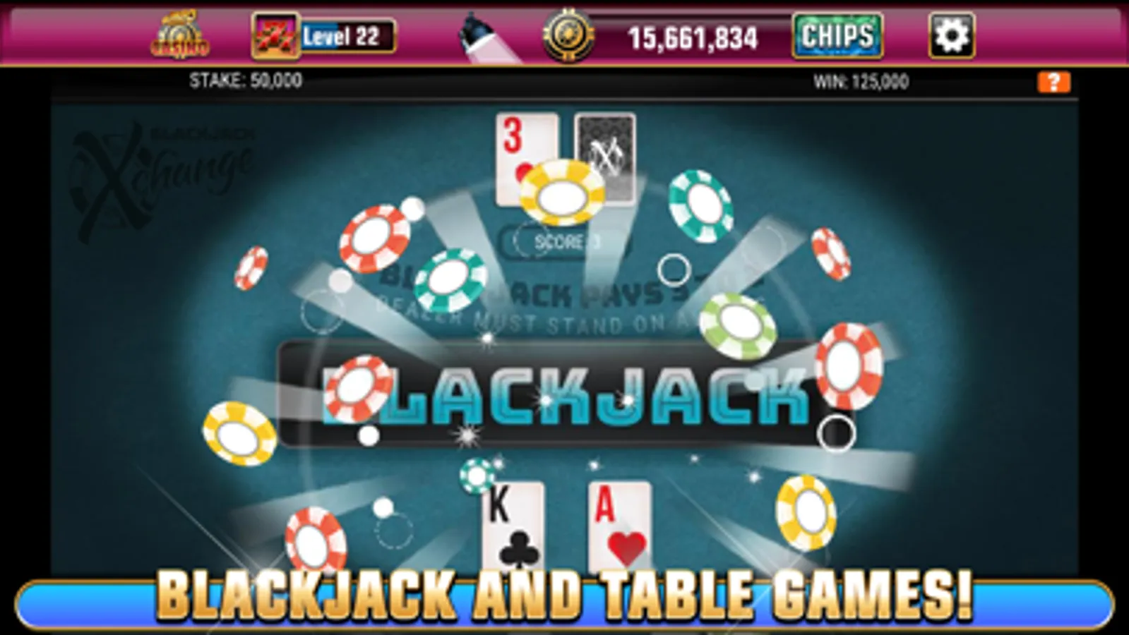 • Blackjack X-Change - Experience a new twist on a classic with a chance to trade your cards for a better hand