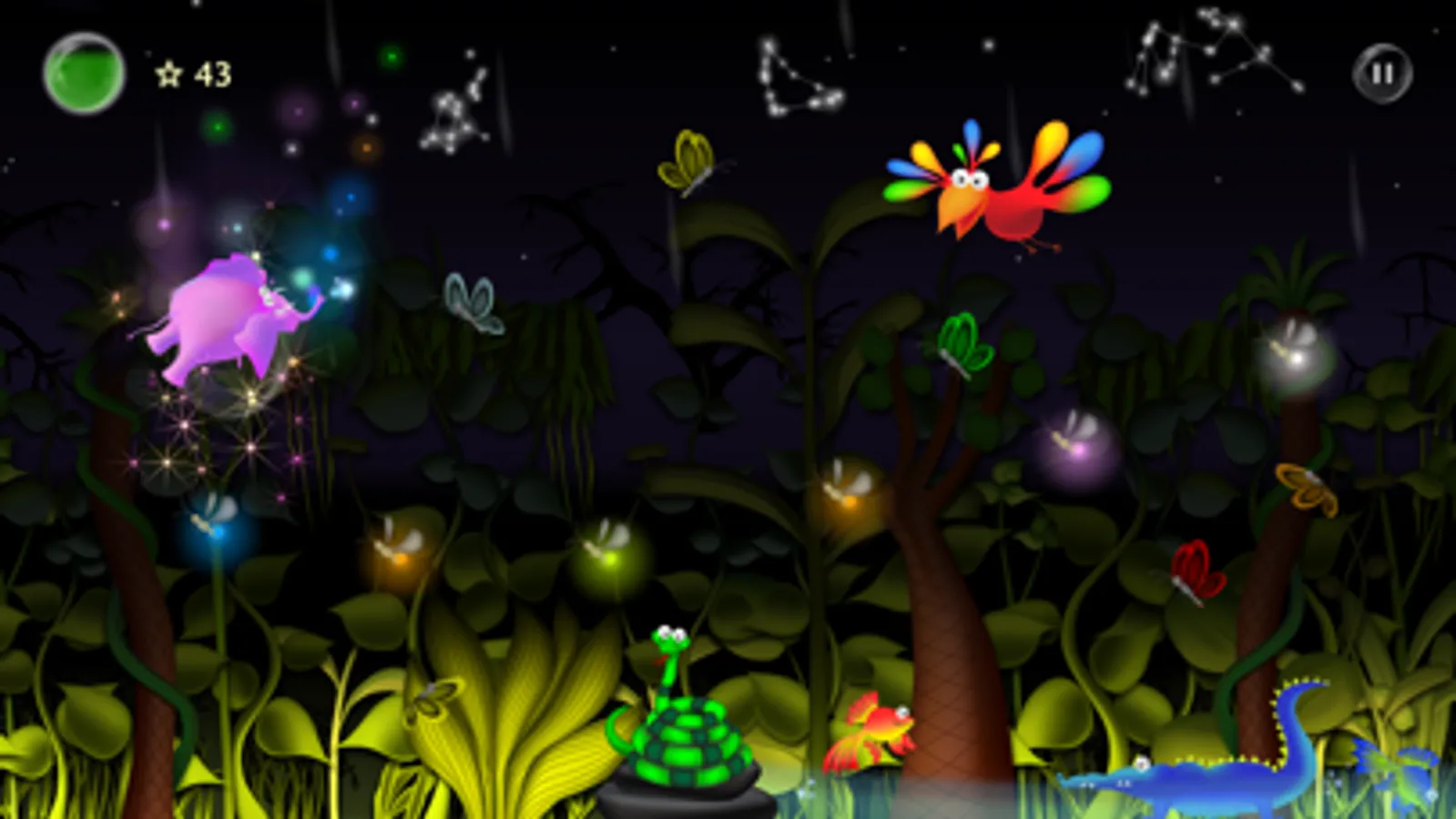 The adventure begins in Kiwaka, a small place in the African jungle (it actually exists!) where the strangest creatures live. They want to discover the night sky and your goal is to catch fireflies to help them - each firefly will light one of the stars in the sky. As the fireflies bring light to the constellations they reveal their hidden mysteries and ancient myths.