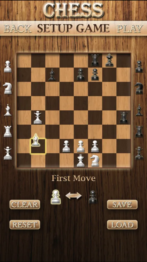 • SAVE / LOAD feature gives you an opportunity to finish the game later or to play the chess puzzle which you can setup in the “Setup Game” module.